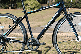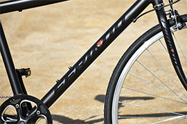 スポーツバイクにしては若干幅広の40cタイヤ採用でクロスバイク初心者でも安定した走行が可能。