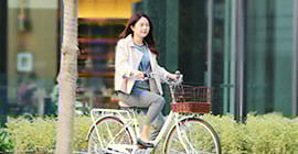 オシャレで荷物もたくさん入る籐風かごがあれば、休日の街乗りにも活躍。
