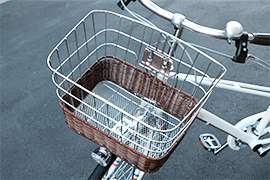 オシャレで荷物もたくさん入る籐風かごがあれば、休日の街乗りにも活躍。