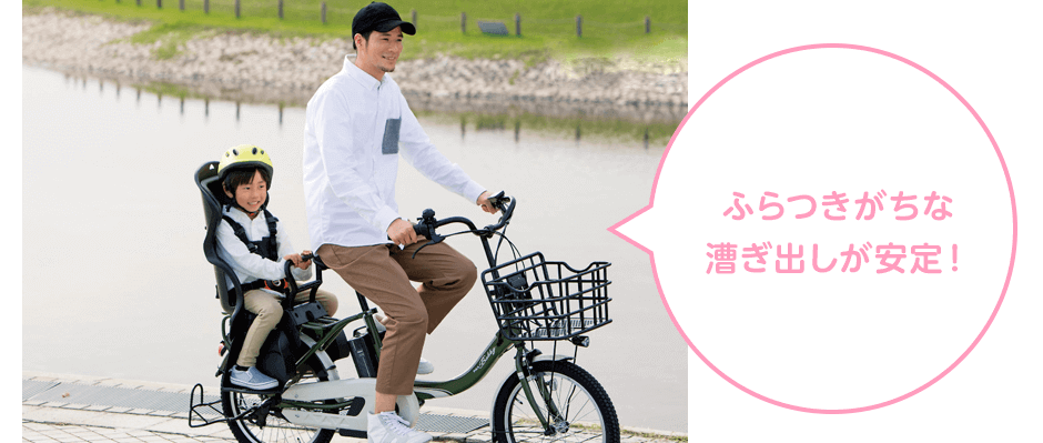 漕ぎ出し時には最大2倍のアシストを発揮!ふらつきを防止し、安全な走り出しが可能です。