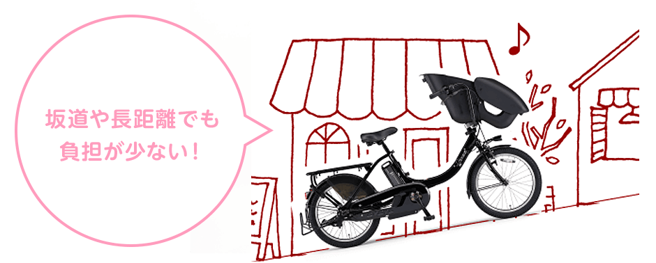 ちょっとした坂道でも歩かずに走行が可能!朝の忙しい通園時間に大きなメリットになります。