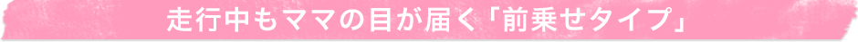 お子様が1歳頃の場合は、お座りできるようになるころから使える「前乗せタイプ」がおすすめ。走行中でも、子どもが親から見える位置なので安心です。4歳(体重15kg以下)まで使用できます。