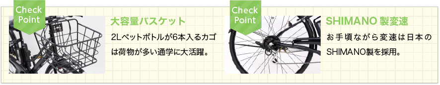内装5段変速やパーキングストッパーを採用した、必要十分な機能を備えた通学、通勤もです。