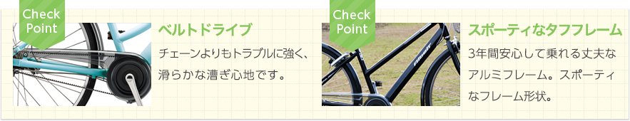高校生の通学使用をイメージして作られた一台。長距離通学でも楽に乗れるよう設計されたフレームが魅力です。