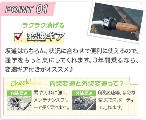 長距離や坂道の通学に嬉しい5段変速機を搭載!安心の国産スタッガード型フレームで、毎日の通学をしっかり支えます。