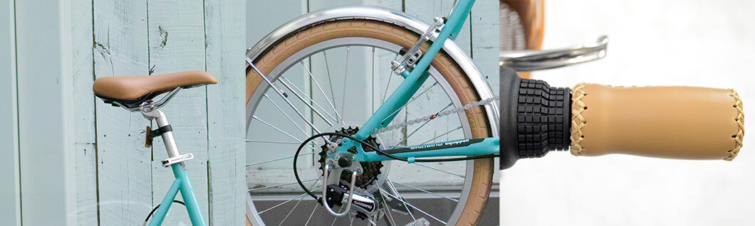 片足スタンド 、外装6段変速 、ハイガードチェーン 、Vブレーキ 、イギリス式バルブ
