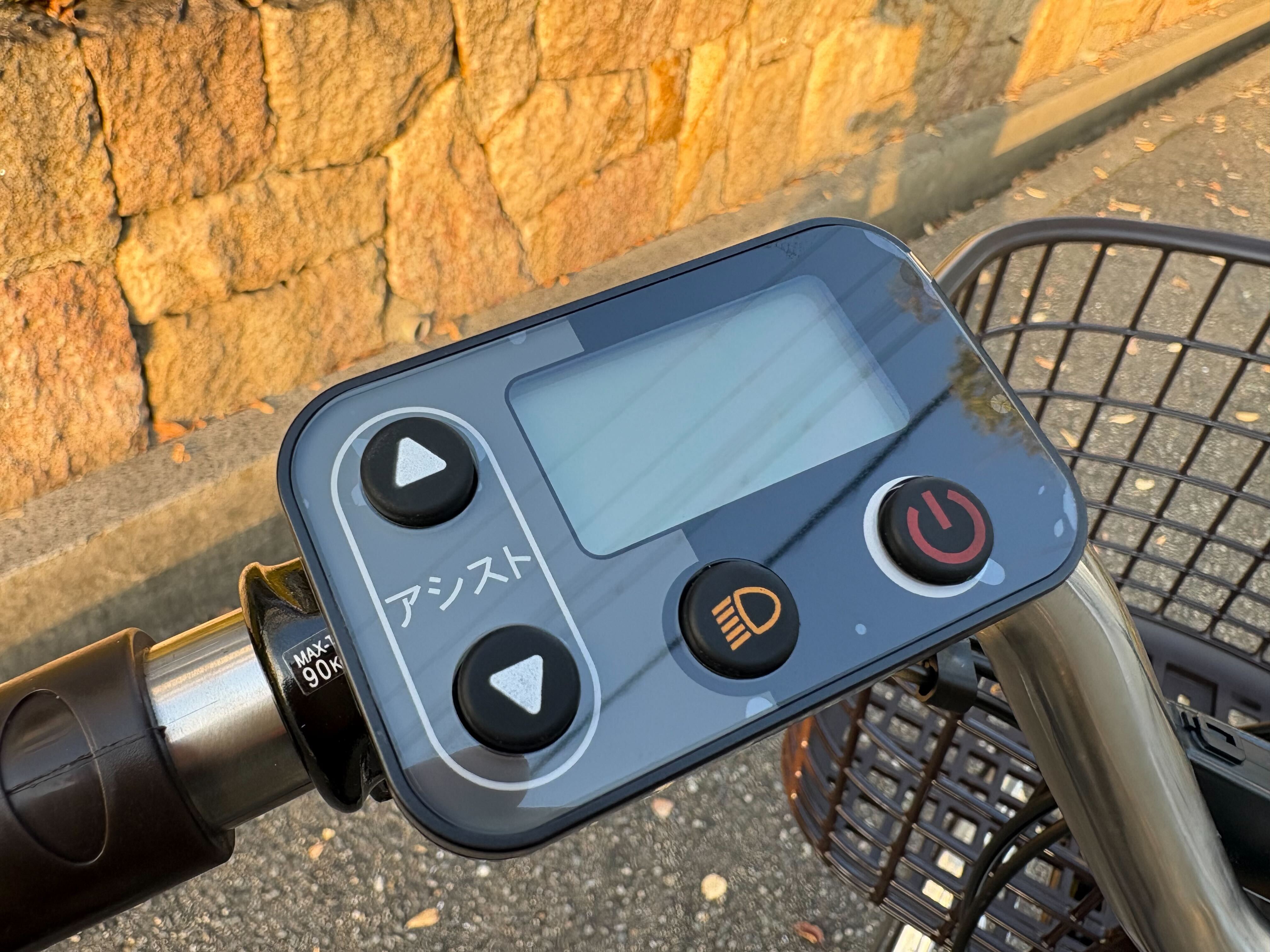 アシストモードは3段階切替で、スピードやバッテリー残量もひと目でわかり、初めてでも操作に戸惑いません。
